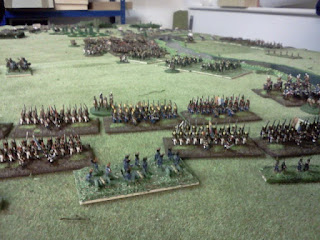 And the far rear of the Austrian left. The Cavalry in the foreground is part of a Division (I think the term is 'Division' anyway) that managed to hold the Austrian centre pretty much alone for the duration of the entire battle. Frugal use enabled them to see off French cavalry, and maintain sufficient threat to slow or divert any opposing infantry advances. The pictured area was to become a scene of ferocious fighting. The pictures below give an idea of what the French were aiming to throw at that flank.