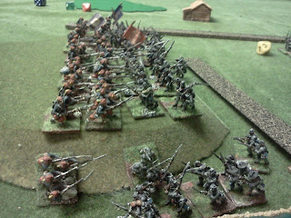 A unit of Scottish commanded shot managed to occupy the Church early on in the battle. They proved incredibly difficult to shift, even in the face of assault by a unit of pikemen.